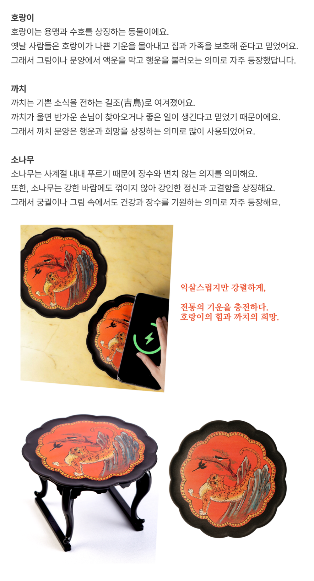민화 소반 무선충전기-호작반