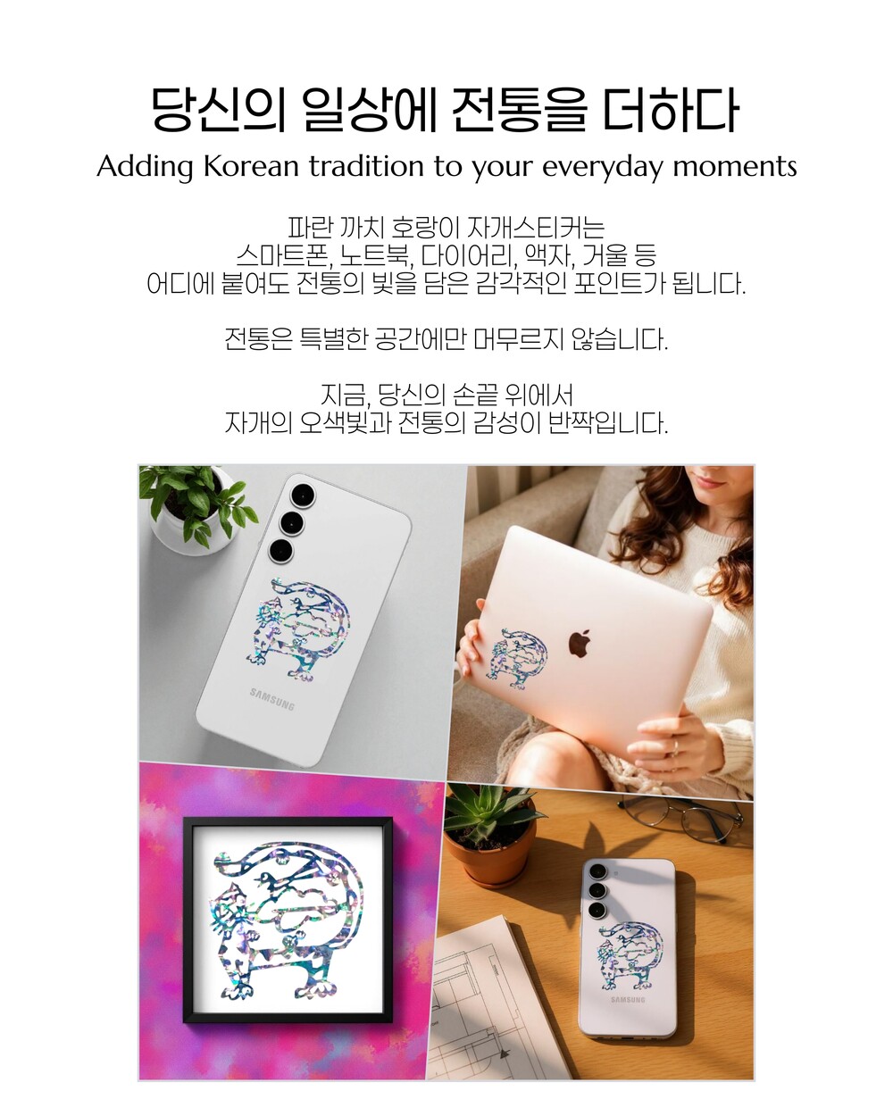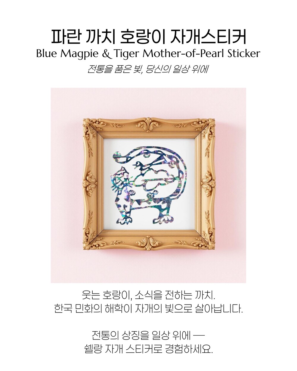 파란 까치 호랑이 자개스티커